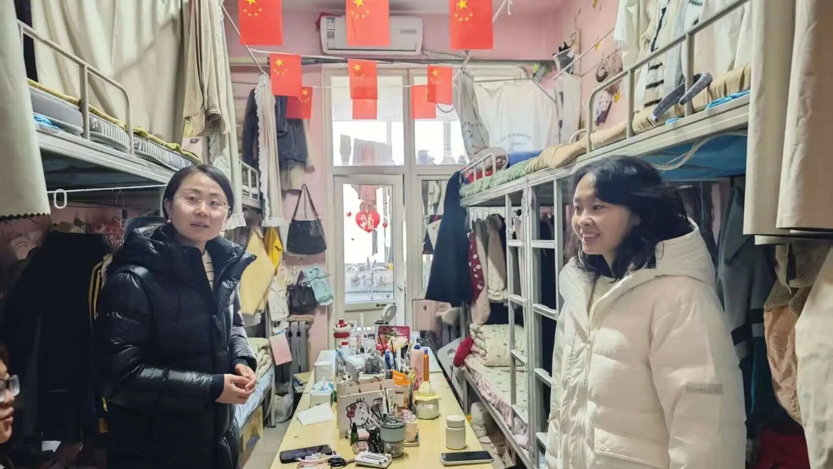 党委副书记田原、团委(学工办)书记(主任)田琪及辅导员吴学强深入学生宿舍,开展期末安全卫生专项排查工作。