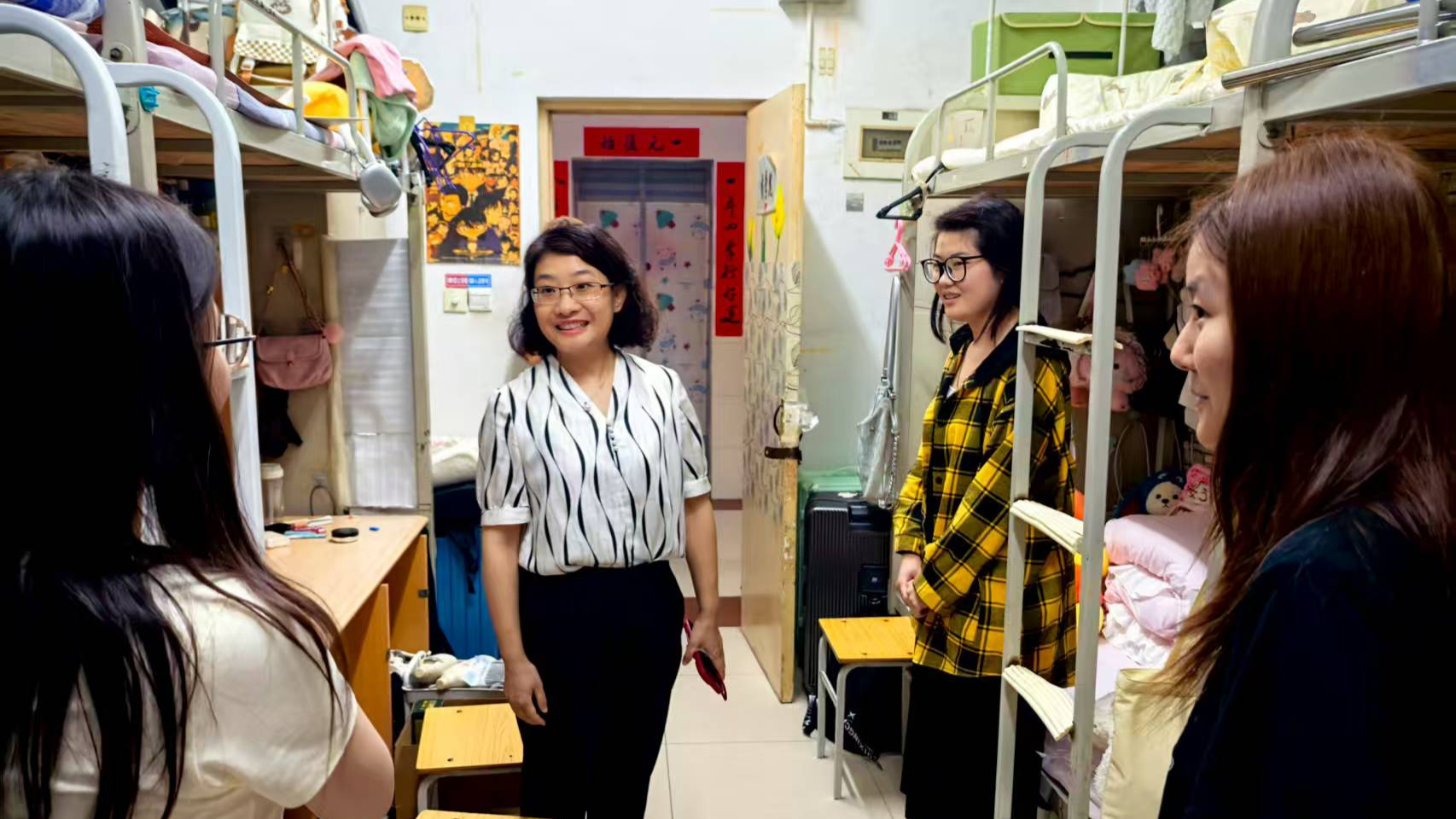 在检查过程中,苏娜娜对学生返校情况、宿舍安全和环境卫生等问题进行了仔细排查,提醒同学们要增强安全防范意识,禁止使用违规电器,保持宿舍整洁通风,共同营造安全、舒适、温馨的学习生活环境。