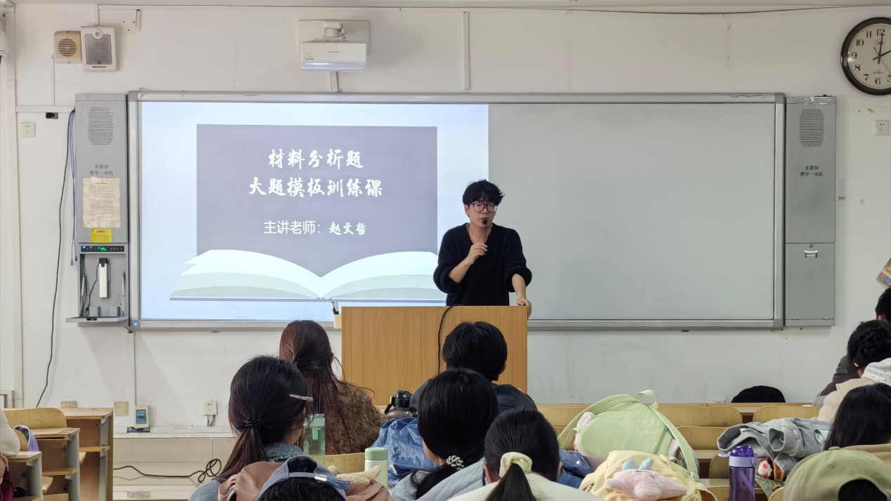 在华佗楼409举办了考研专题讲座。本次讲座邀请了文都考研政治教师赵文哲担任主讲。