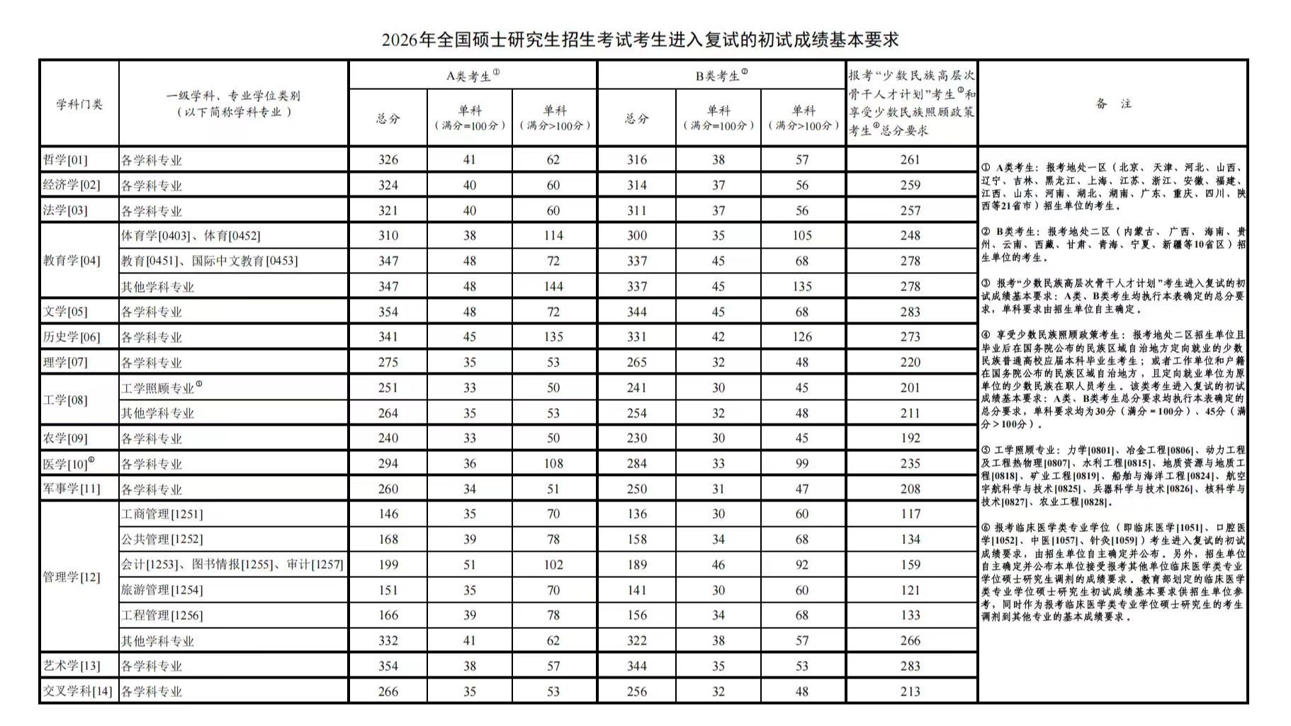 各招生单位根据《2026年全国硕士研究生招生工作管理规定》,在国家分数线的基础上,自主确定并公布报考本单位的考生进入复试的初试成绩要求及其他学术要求。